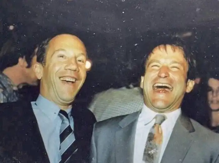 Первый ведущий телепередачи «Поле чудес» Владислав Листьев обнимает своего бессменного преемника — Леонида Якубовича. Судьба обоих оказалась трагичной. Владислава Листьева убили в подъезде его собственного дома в марте 1995 года. Леонид Якубович работает ведущим капитал-шоу до сих пор.