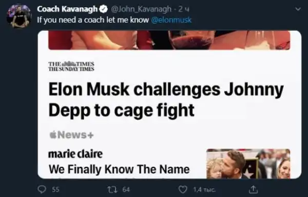 Илон Маск вызвал Джонни Деппа на бой в октагоне