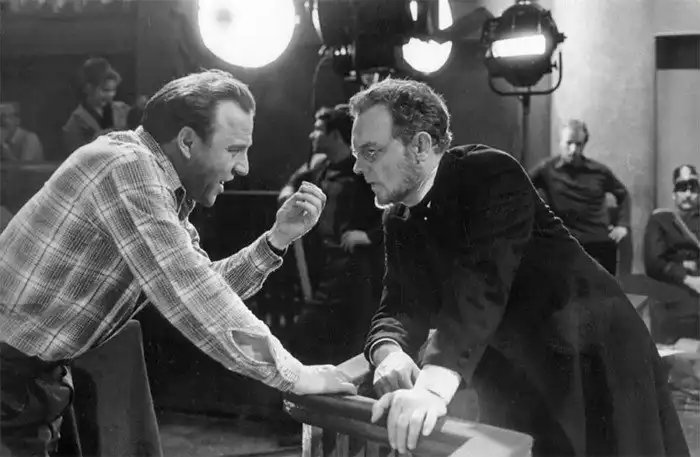 Михаил Ульянов (Митя Карамазов) и Кирилл Лавров (Иван Карамазов) на съемочной площадке кинофильма "Братья Карамазовы". 24 апреля 1968 года. Фото Валентина Мастюкова /Фотохроника ТАСС/