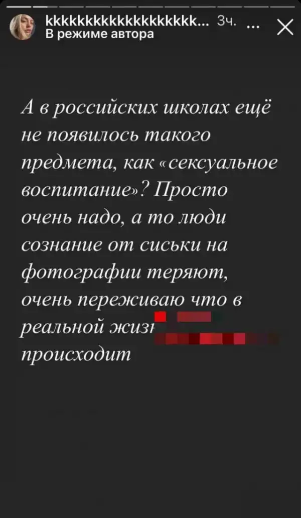 Катя Кищук несколько лет пела в популярной группе SEREBRO, после чего начала сольную карьеру и переехала к бойфренду. Катя знаменита тем, что публикует горячие фотографии в социальных сетях, но в последнее время ее удивила реакция пользователей на свои фото. Она задалась вопросом - а есть ли сексуальное образование в России?