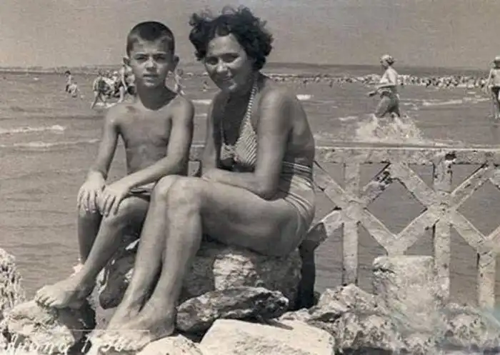 А на этом снимке семилетний Миша Боярский с мамой Екатериной Михайловной. Отдых с детьми в Анапе - это классика.