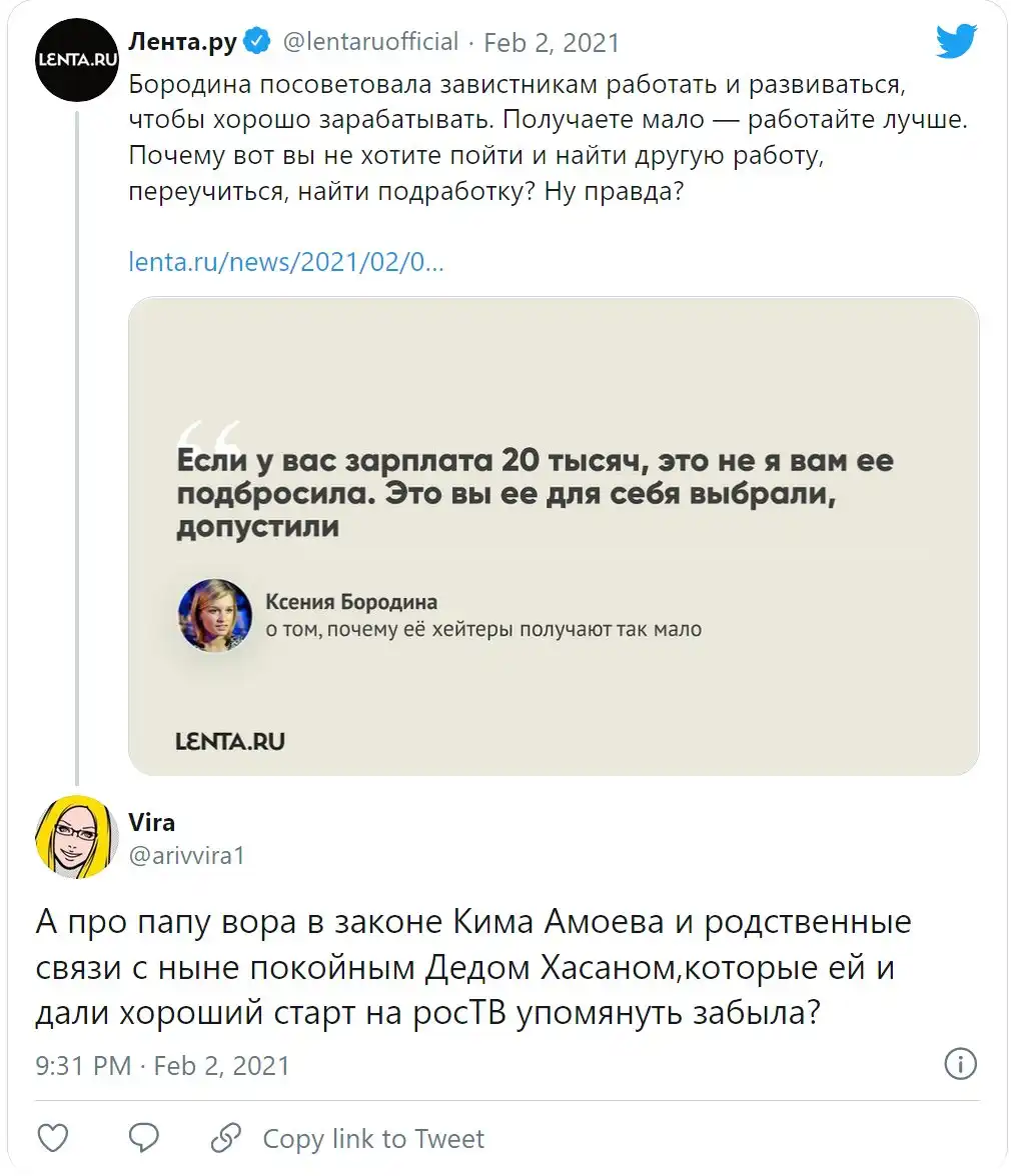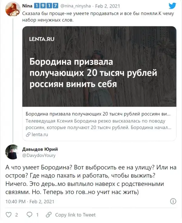 В других соцсетях тоже отреагировали на гневный спич Бородиной.