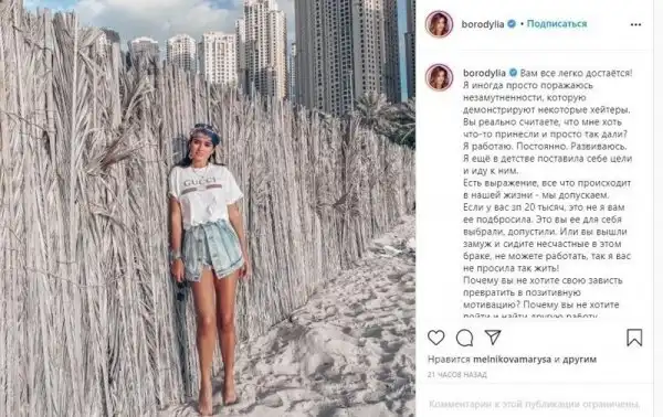 "Почему вы не хотите свою зависть превратить в позитивную мотивацию? Почему вы не хотите пойти и найти другую работу, переучиться, найти подработку? Потому что написать гадость, назвать человека тварью, по причине его дохода - проще, чем заняться собой? Думаю да. Есть масса людей, зарабатывающих больше меня. Но я не пишу злые анонимки всем из списка Форбс. Мне некогда, я работаю, чтоб позволить себе то что хочу! Самая гнилая мысль, не желать жить так же хорошо, как кто-то, а надеяться, что этот кто-то будет жить хуже тебя", - отчитала хейтеров Ксюша. Ее резкий ответ, опубликованный на личной странице в Инстаграм, не на шутку разозлил пользователей соцсетей. Даже среди ее подписчиков нашлось достаточно тех, кто поставил телеведущую на место.