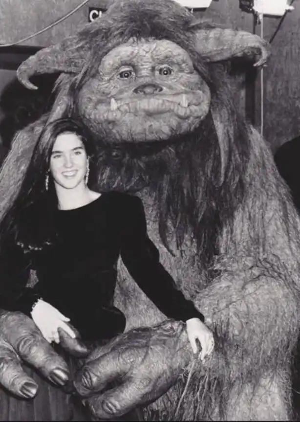 14. Дженнифер Коннелли и Людо на съемках фильма «Лабиринт», 1986 год