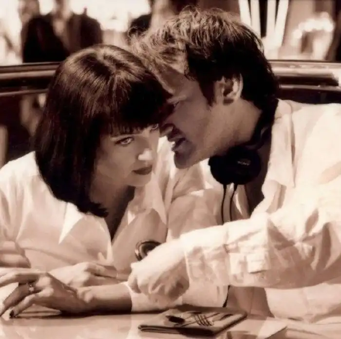 27. Ума Турман и Квентин Тарантино во время съемок фильма «Криминальное чтиво», 1994 год