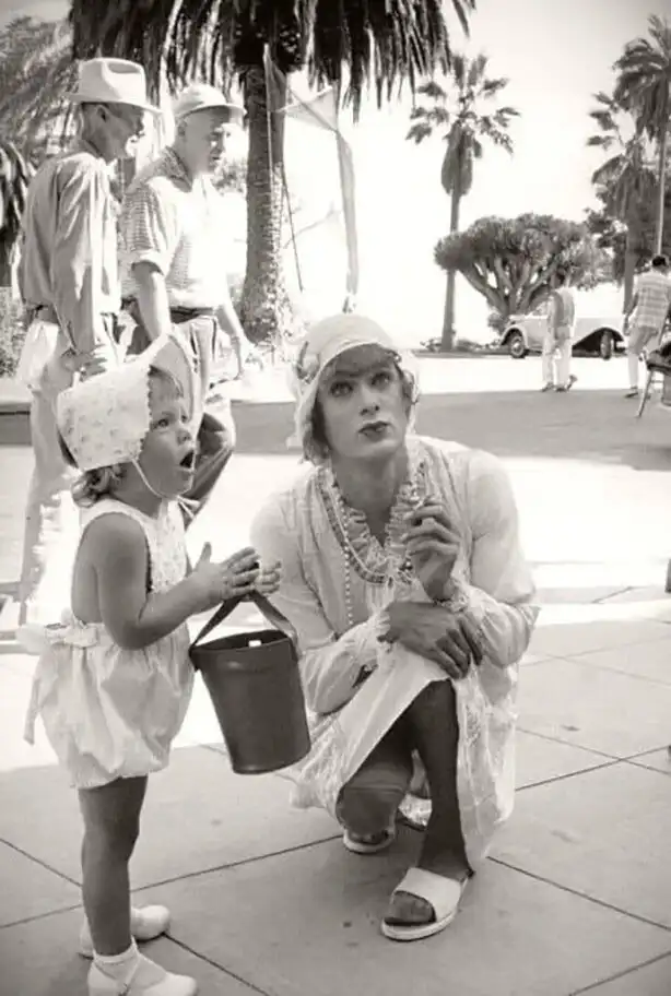 29. Кадр со съемок фильма «В джазе только девушки». Малышка Джейми Ли Кёртис навещает своего отца Тони Кёртиса