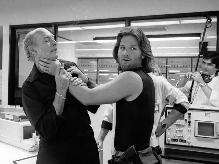 36. Ли Ван Клиф и Курт Рассел на съёмках «Побег из Нью-Йорка»