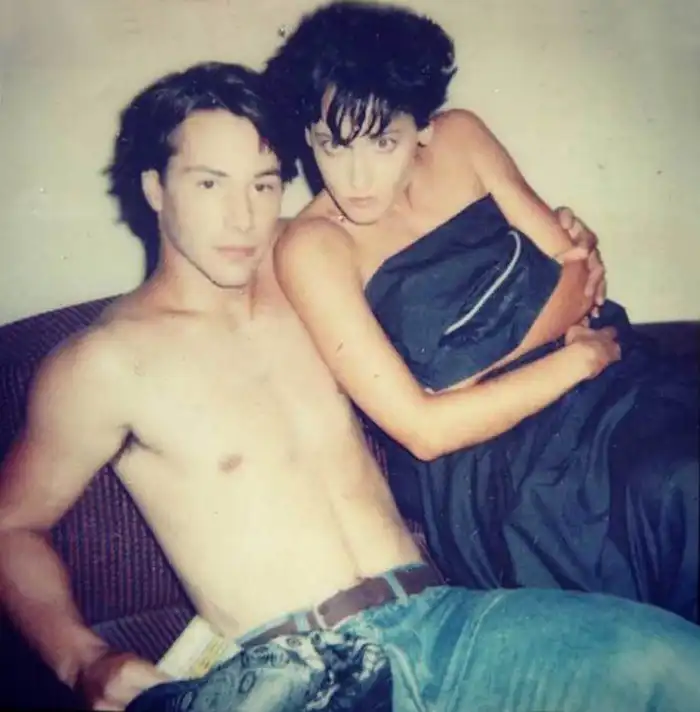 42. Киану Ривз и Лори Петти на съёмках «На гребне волны»