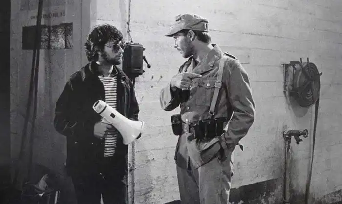 45. Стивен Спилберг и Харрисон Форд на съемочной площадке "Индиана Джонс: В поисках утраченного ковчега". 1981 год