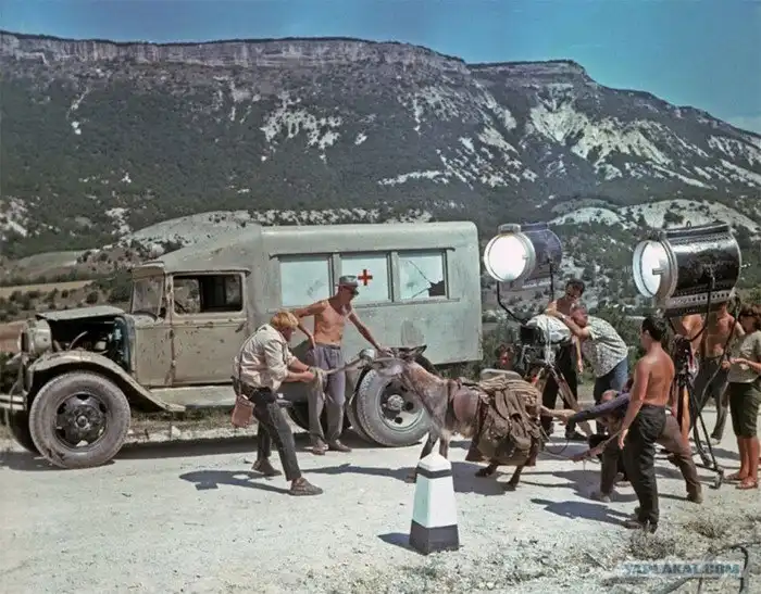 48. На съемках "Кавказской пленницы", 1966 год. Осел-упрямое животное