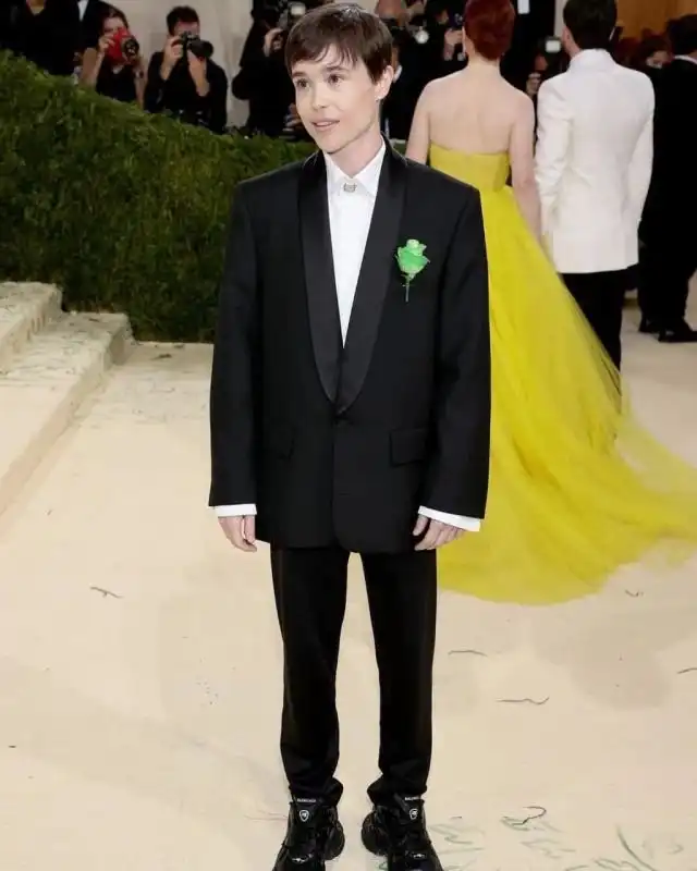 Недавно прошел бал Met Gala - событие в мире моды, где разные знаменитости щеголяют в сюрреалистических нарядах. Но один гость мероприятия выбрал очень скромный и консервативный стиль. Главным скромнягой стал Эллиот Пейдж (в девичестве Эллен Пейдж). Актер(ка) уже привык своему мужскому обличию и пришел в простом, но элегантном черном костюме. Правда, учитывая внешность Пейдж, он похож на мальчугана на школьной линейке, который пришел в костюме своего старшего брата. Не сочтите за лукизм, но это все очень забавно (и нелепо) выглядит.
