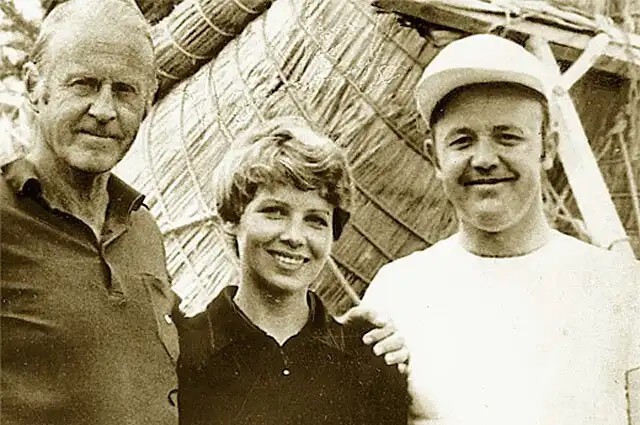 Юрий Сенкевич с первой женой Ирмой Помчаловой и коллегой Туром Хейердалом.
