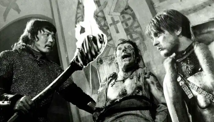 В фильме Тарковского «Андрей Рублев» есть сцена, где героя Никулина пытают. К его лицу подносили факел, и хоть огонь до лица не доставал, актер кричал страшным голосом. Поскольку снимали его по пояс, никто сразу не видел, что ему на босые ноги капала горячая солярка с факела.