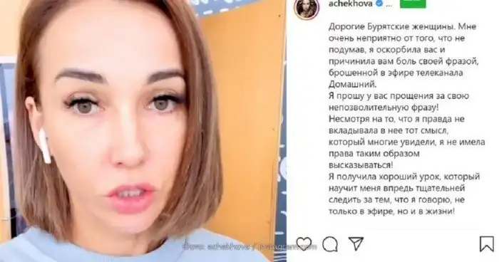 Именно на этом канале она участвовала в программе «Скажи, подруга», где нужно было делиться секретами и затевать задушевные женские разговоры. Возможно, всё и было бы хорошо, если бы не одно неосторожное высказывание Чеховой, оскорбившее бурятских женщин.