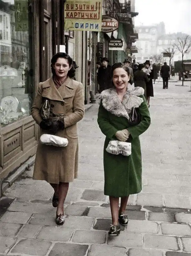 3. Болгария, зимняя София, 40-е годы. Девушки с покупками.