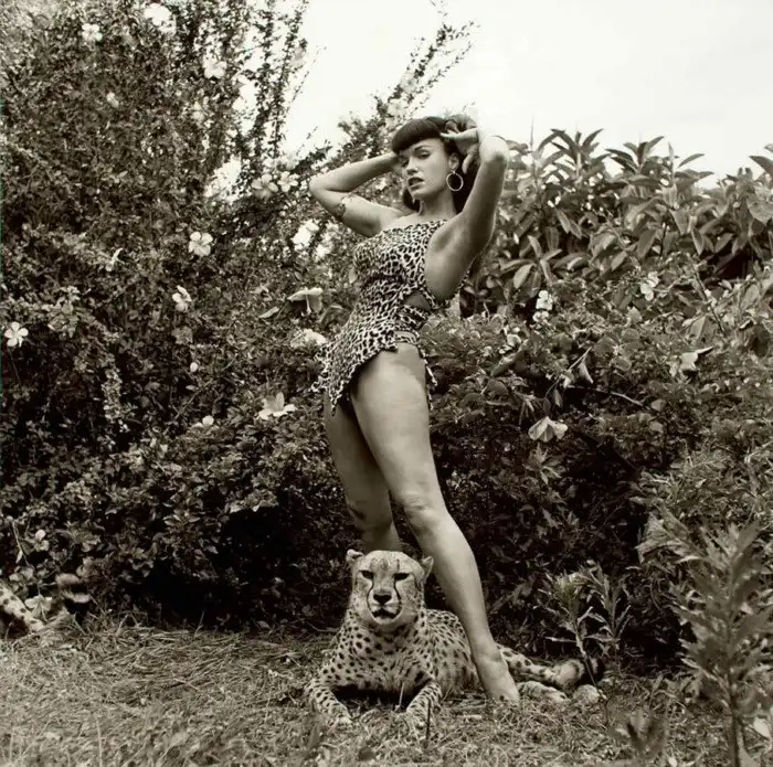 22. Американская фотомодель Бетти Пейдж и гепард, 1954 год.