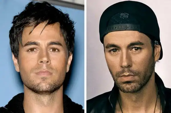 Слева фото 2008-го, где певцу 33 года, справа кадр из клипа Энрике Иглесиаса «PENDEJO» (2021), где ему 46 лет.
