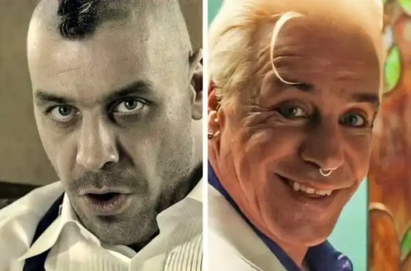 Слева кадр из клипа 2001 года группы Rammstein «Ich will», где фронтмену коллектива 38 лет. Справа кадр из клипа 2021 года «Le jardin des larmes» певицы ZAZ и Линдеманна. На момент выхода видео музыканту было 58 лет.