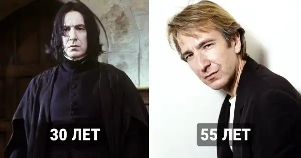 В первой части фильма о приключениях Гарри Поттера Северусу Снейпу около 30 лет. Его роль безупречно исполнил Алан Рикман, которой на тот момент был старше своего героя на 25 лет.