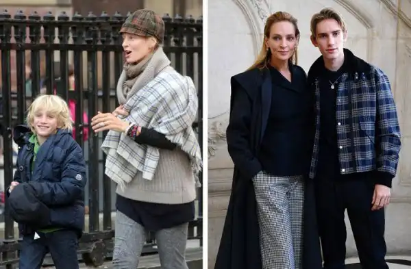 Ума Турман и ее сын Левон