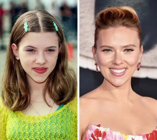 Скарлетт Йоханссон в 13 лет в 1997 году и в 37 лет в 2021 году