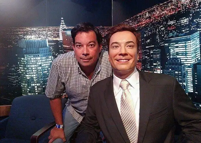 "Слева - мой отец, справа - восковая фигура Джимми Фэллона. Правда, похож?"