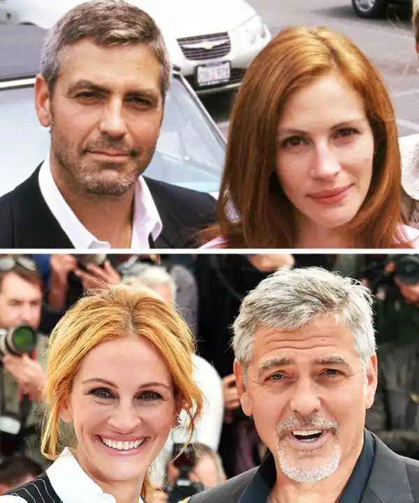 Джордж Клуни и Джулия Робертс в 2001 году и через 15 лет