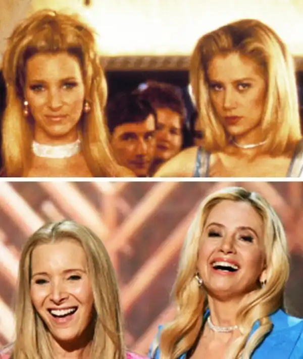Лиза Кудроу и Мира Сорвино в 1997 и 2022 годах