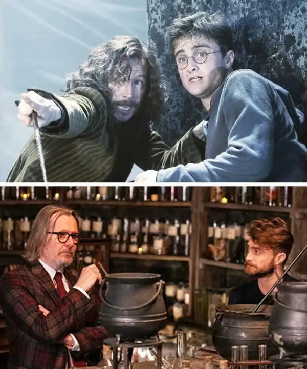 Гэри Олдмен и Дэниэл Рэдклифф в 2007 году и спустя 15 лет