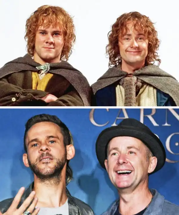 Доминик Монаган и Билли Бойд в 2001 и 2019 годах