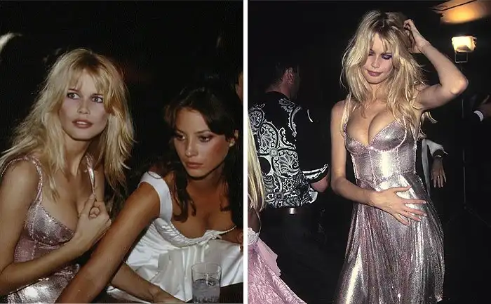 Клаудия Шиффер (и Кристи Тарлингтон) на вечеринке Versace After Party в Париже в 1994 году