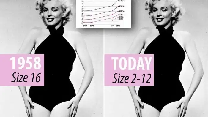 Вопреки распространенному мнению, Мэрилин Монро не была британского размера 16, что соответствует «фигуристому» образу. Она варьировалась от британского размера 4 до размера 8 - то есть, была очень стройной.