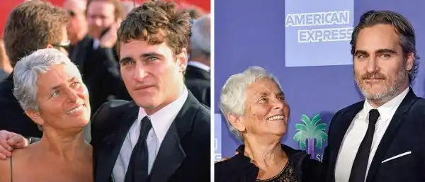 Хоакин Феникс и его мама Арлин, в 2001 и в 2020