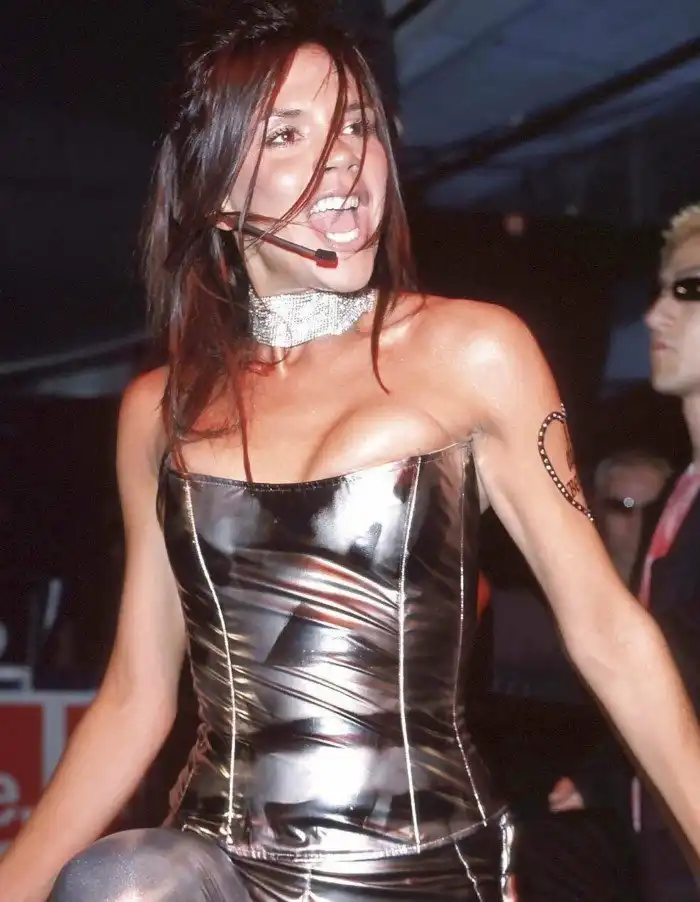 Виктория Бекхэм, в нулевые, предпочитала супер-обтягивающие платья и глубокие декольте.