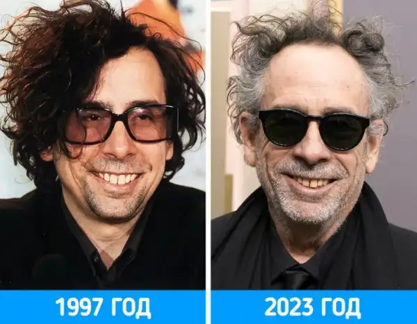 На фоне слева культовому режиссеру Тиму Бертону 39 лет. За его плечами уже такие ленты, как «Битлджус», «Эдвард Руки-ножницы» и «Бэтмен возвращается»