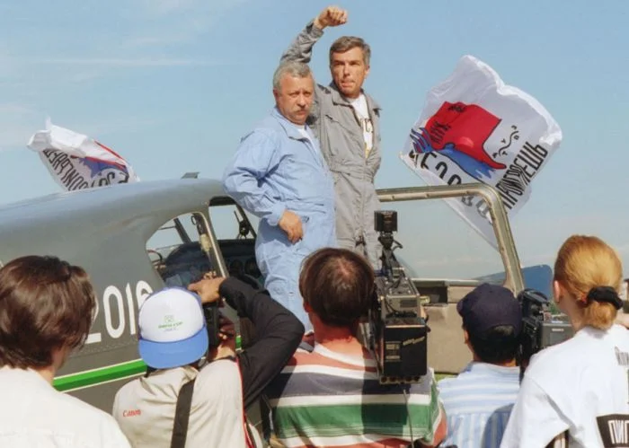 6. Леонид Якубович и Юрий Николаев перед агитационным авиаперелетом, 1996 год