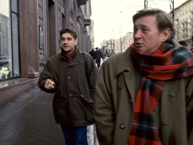 41. Сергей Маковецкий и Роман Виктюк гуляет по Тверской улице, 1994 год