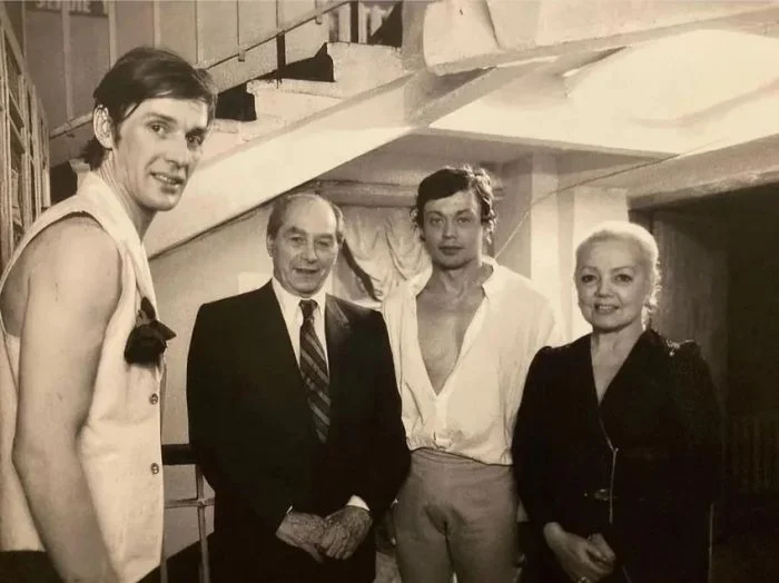 22. Александр Абдулов, Николай Караченцов и артист балета и педагог Игорь Моисеев с супругой Ириной.