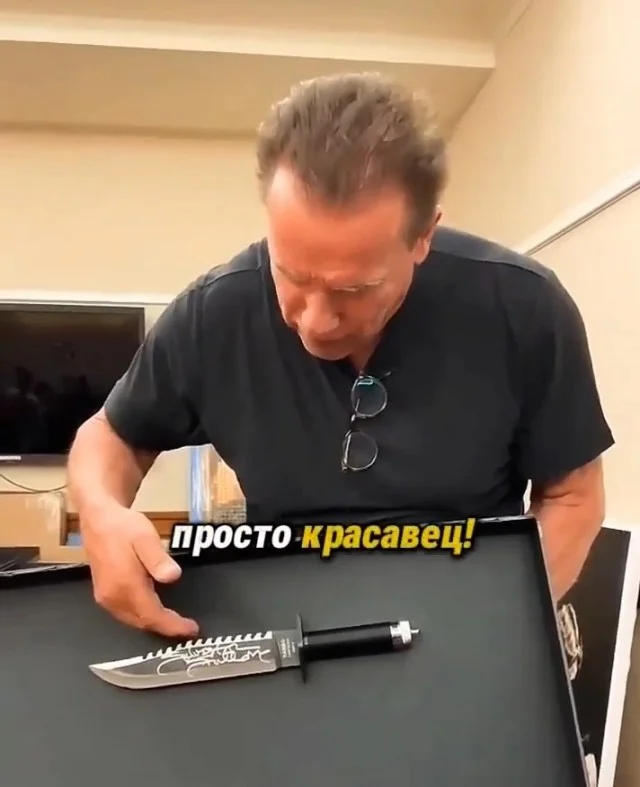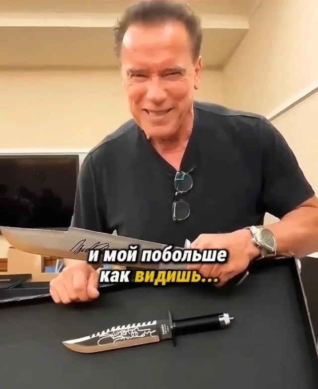 Старик Арни выкупил нож Сталлоне и решил пошутить над старым другом