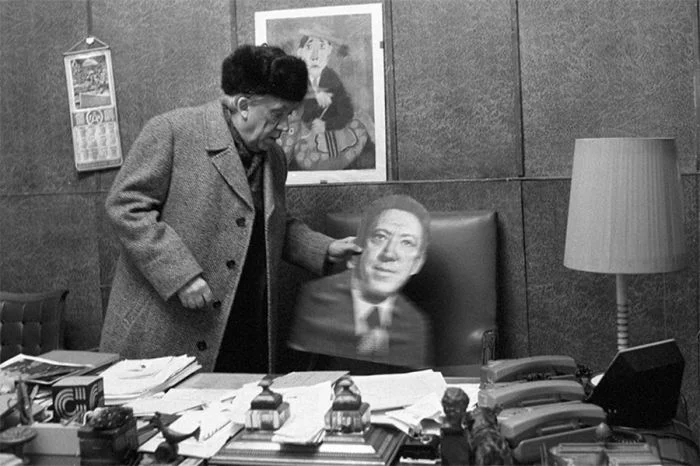 22. Юрий Никулин и Михаил Шуйдин во время встречи с зрителями, 1962 год