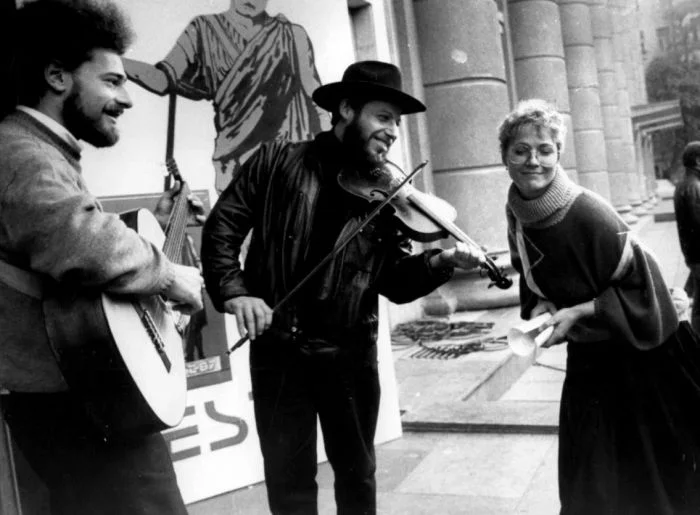 11. Нина Русланова вместе с уличными музыкантами во время прогулок по Арбату в рамках 8-го Московского Международного кинофестиваля, 1973 год