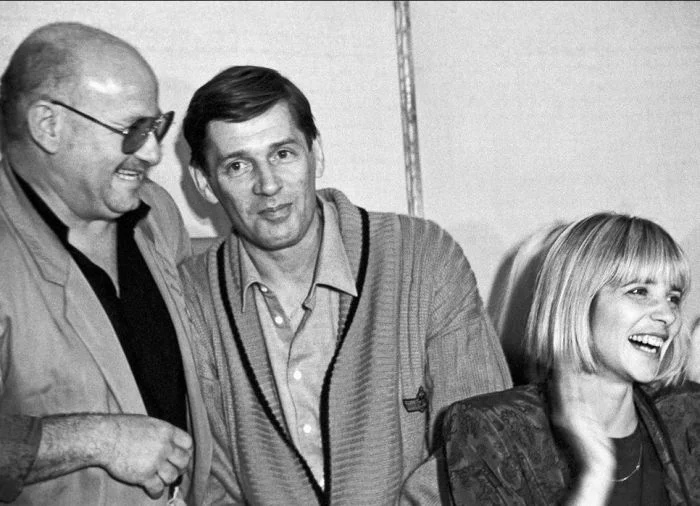 16. Марк Рудинштейн, Александр Абдулов и Вера Глаголева на встрече в Гильдии актеров, 1991 год
