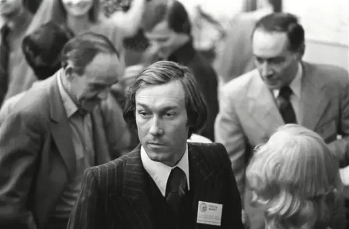 30. Олег Янковский, на заднем плане: Вячеслав Тихонов и Михаил Глузский. XI Московский международный кинофестиваль. Москва, август 1979 года