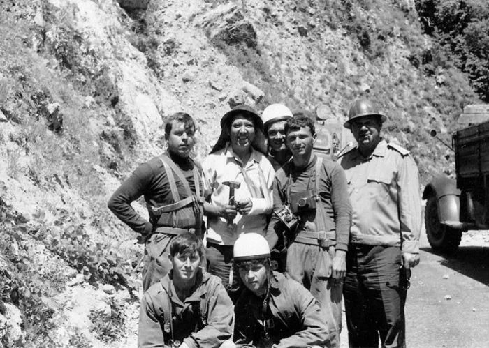 30. Леонид Куравлёв, Василий Шукшин и Белла Ахмадулина на съёмках фильма «Живёт такой парень»
