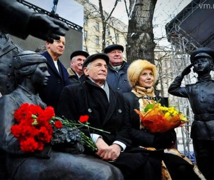 3. Василий Лановой и Ирина Купченко на открытии памятника героям фильма «Офицеры». 9 декабря 2013 года.