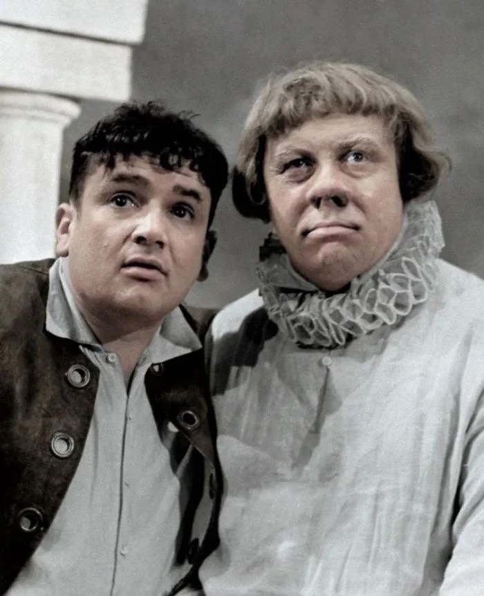 20. Евгений Весник и Анатолий Папанов в спектакле «Проделки Скапена», 1957 год.