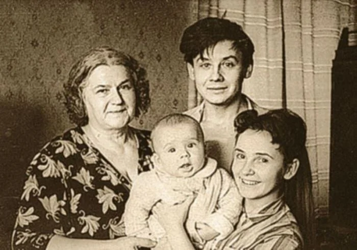 18. Олег Табаков с семьёй - мамой Марией Андреевной, первой женой Людмилой Крыловой и сыном Антоном