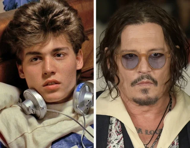 Джонни Депп в фильме "Кошмар на улице Вязов" в 1984 году и в 2024