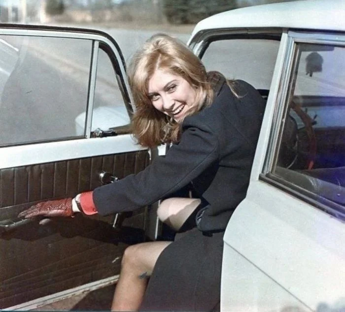 25. Ирина Мирошниченко за рулём собственного «Москвича», 1970-е годы.