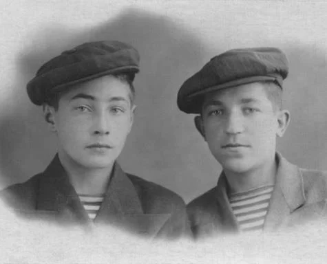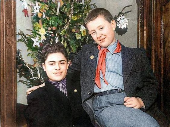 Во время войны Слава бросил учебу, окончил ремесленное училище и работал на заводе токарем. Но уже тогда он «заболел» кинематографом. Мечтал стать артистом, как его любимые актеры Борис Бабочкин, Николай Черкасов, Михаил Жаров. Однажды он даже рванул в Москву (благо она рядом), пробрался на киностудию и наивно у какого-то работника спросил (рабочего спросил) — как стать актером кино? Тот ему и ответил, что для этого надо окончить институт кинематографии. В 17 лет он поступил во ВГИК, и его мечта сбылась... Таким Слава Тихонов был в юности. На этой фотографии он вместе с близким другом.